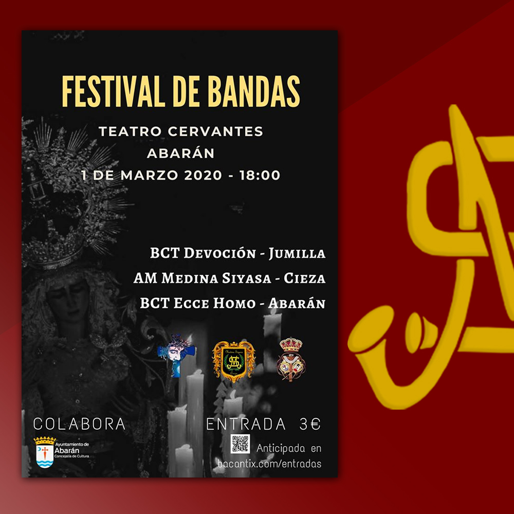 El próximo día 1 de marzo, a las 18:00, tendrá lugar el Festival de Bandas de Música Procesional en el Teatro Cervantes de Abarán.